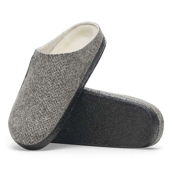The BIRKENSTOCK Zermatt is our first true slipper. It features our iconic cork latex footbed, and to keep you extra cozy, it’s fully lined in genuine shearling that will keep your feet warm all winter long. The upper consists of soft genuine wool.