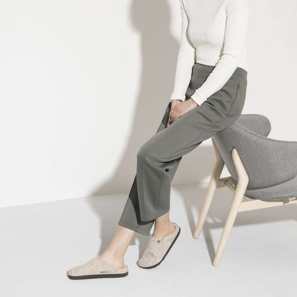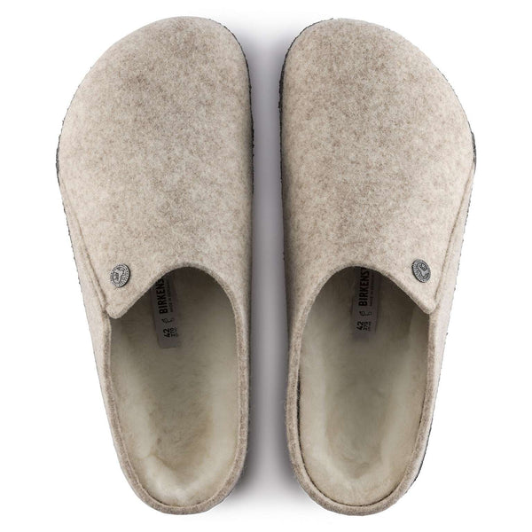 The BIRKENSTOCK Zermatt is our first true slipper. It features our iconic cork latex footbed, and to keep you extra cozy, it’s fully lined in genuine shearling that will keep your feet warm all winter long. The upper consists of soft genuine wool.