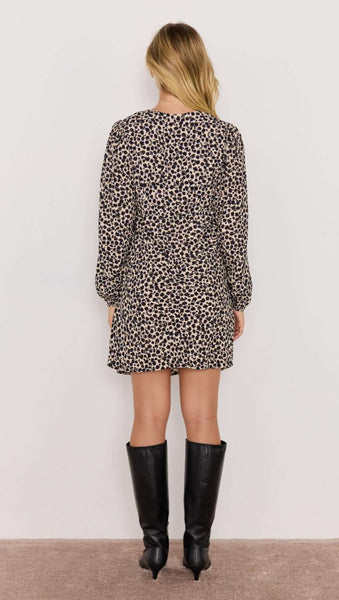A statement print meets an easy silhouette in the Elka Long Sleeve Mini Dress. Featuring a neutral-toned abstract spot print, this breezy mini is designed with a deep V neckline, adjustable tie front, and blouson sleeves with gathered cuffs - perfect for day-to-night dressing.