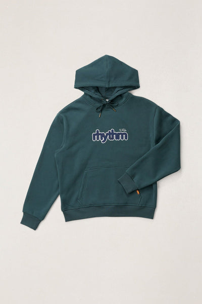 Relaxed and effortless, this fleece hood features an embroidered applique logo, adjustable drawstring hood, and pouch pocket. A cozy essential finished with Rhythm's signature trims.
