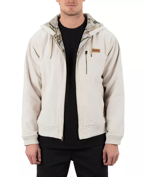 A rugged essential with refined detailing, the Shapers Canvas Worker Jacket is built for both utility and everyday wear. This full-zip, hooded silhouette features ribbed cuffs and hem for added comfort and structure. The interior reveals a Real tree camo-printed taffeta lining with light 60 gsm quilting for warmth without the bulk.
