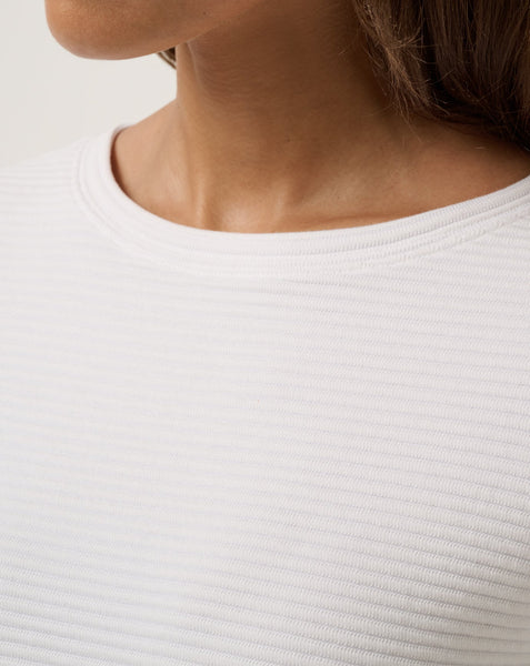 • Short sleeve ribbed top• Relaxed fit• Crew neckline• Side slits