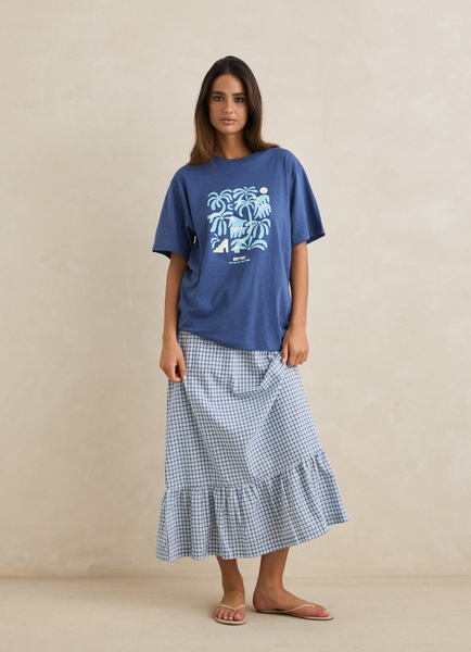 A coastal favorite, the Island Oversized Tee in Indigo blends an oversized relaxed fit with a soft front chest print. Designed for easy layering year-round.