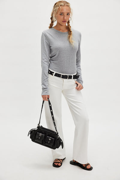 This tee features a soft heathered fabrication and perfectly laidback silhouette with raised seams for added texture.