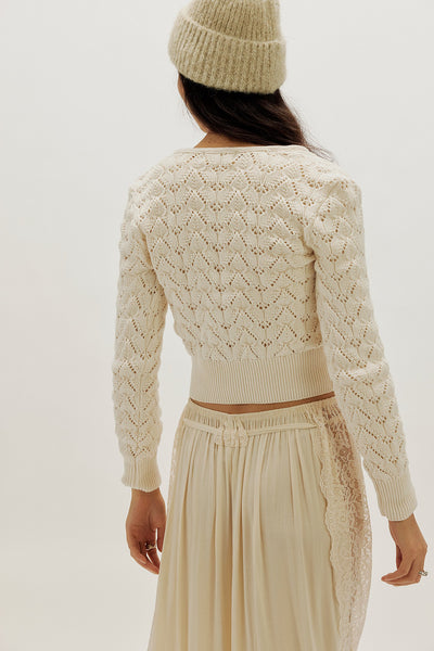 Your next eye-catching essential, this ethereal cardi features a soft cotton fabrication, an elegant pointelle knit design, and a cropped, fitted silhouette for a flattering touch.