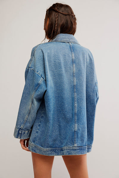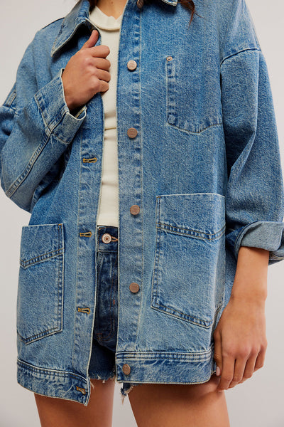 Traditional with a twist, this denim chore jacket from We The Free is featured in an oversized, slightly structured design with patch pockets and that perfect washed finish.