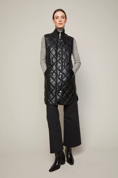 Based off the famous fit and styling of the Libby coat, the Destiny vest has also become one of Adroit's signature pieces in the diamond quilted pattern. We love it in this Black Vegan leather.