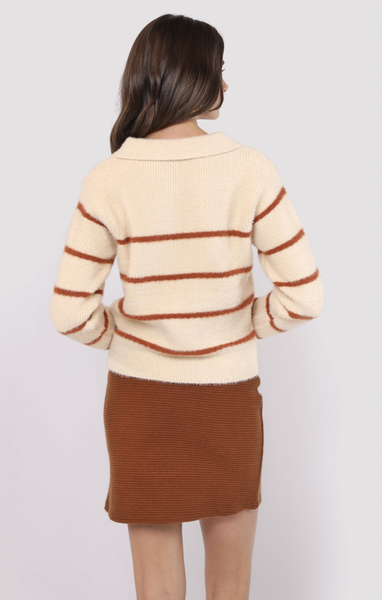Add a splash of fun to your wardrobe with the Tova Collared Striped Sweater. Its playful stripes and crisp collar bring a fresh twist to cozy comfort, making it perfect for brightening up any casual outing or workday. Stay snug while showing off your spirited style effortlessly.