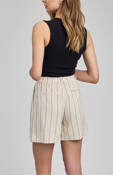 The Alma is a classic trouser short reimagined in a linen blend fabric for an effortless look and feel. Features include slash pockets and an elasticated back waistband for ease of wear. Complete the look with the Vera tank or Portia button-up