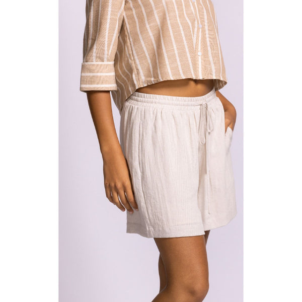 The Killion Short is your answer to polished comfort on warm days. Designed with a soft elastic waistband and adjustable drawstring, it offers that effortless pull-on ease while still looking intentionally styled. The lightweight fabric has a beautiful drape, giving these shorts a breezy, relaxed silhouette that moves with you.