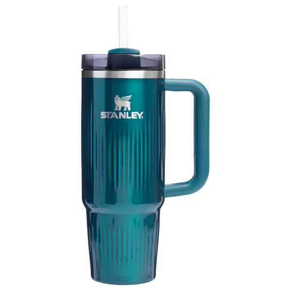 Constructed of recycled stainless steel for sustainable sipping, our 30 oz Quencher H2.0 offers maximum hydration with fewer refills. Commuting, studio workouts, day trips or your front porch—you’ll want this tumbler by your side. Thanks to Stanley’s vacuum insulation, your water will stay ice-cold, hour after hour. The advanced FlowState™ lid features a rotating cover with three positions: a straw opening designed to resist splashes while holding the reusable straw in place, a drink opening, and a full-cover top. The ergonomic handle includes comfort-grip inserts for easy carrying, and the narrow base fits just about any car cup holder.