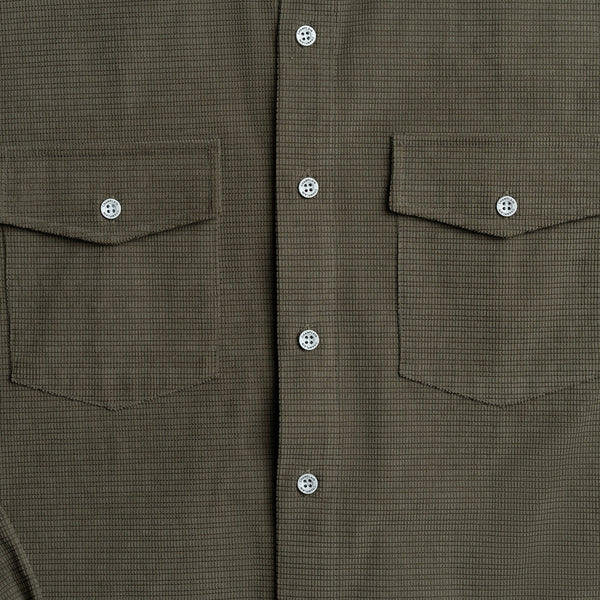 Understated and elevated, this textured overshirt brings refined structure to everyday layering. Made from a soft waffle-weave cotton blend, it features dual flap chest pockets and tonal buttons for a clean, utilitarian finish. Ideal for transitional weather or worn open over a tee for a relaxed, effortless look.
