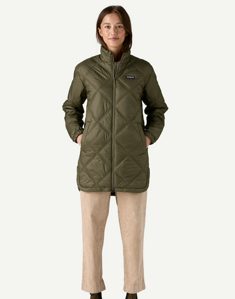 Warm, sporty and detailed, the Pine Bank Insulated Parka is built from 100% recycled polyester ripstop with a durable water repellent (DWR) finish that's made without intentionally added PFAS, and insulated with 100-g Thermogreen® 100% recycled polyester. Diamond quilting and a curved hem create a silhouette that's great for layering during transitional seasons. Made in a Fair Trade Certified™ factory.